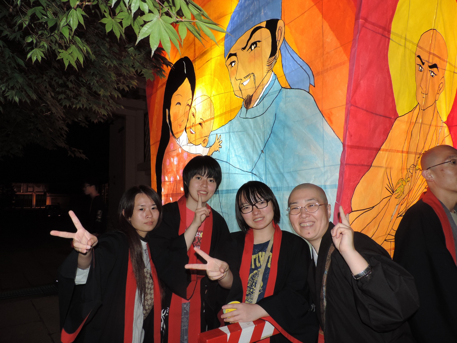 自分たちで作ったネブタに 灯が点りました。 何台ものネブタと一緒に 高野山内を練り歩きます。 屋台も出て、お祭りは楽しいよ。