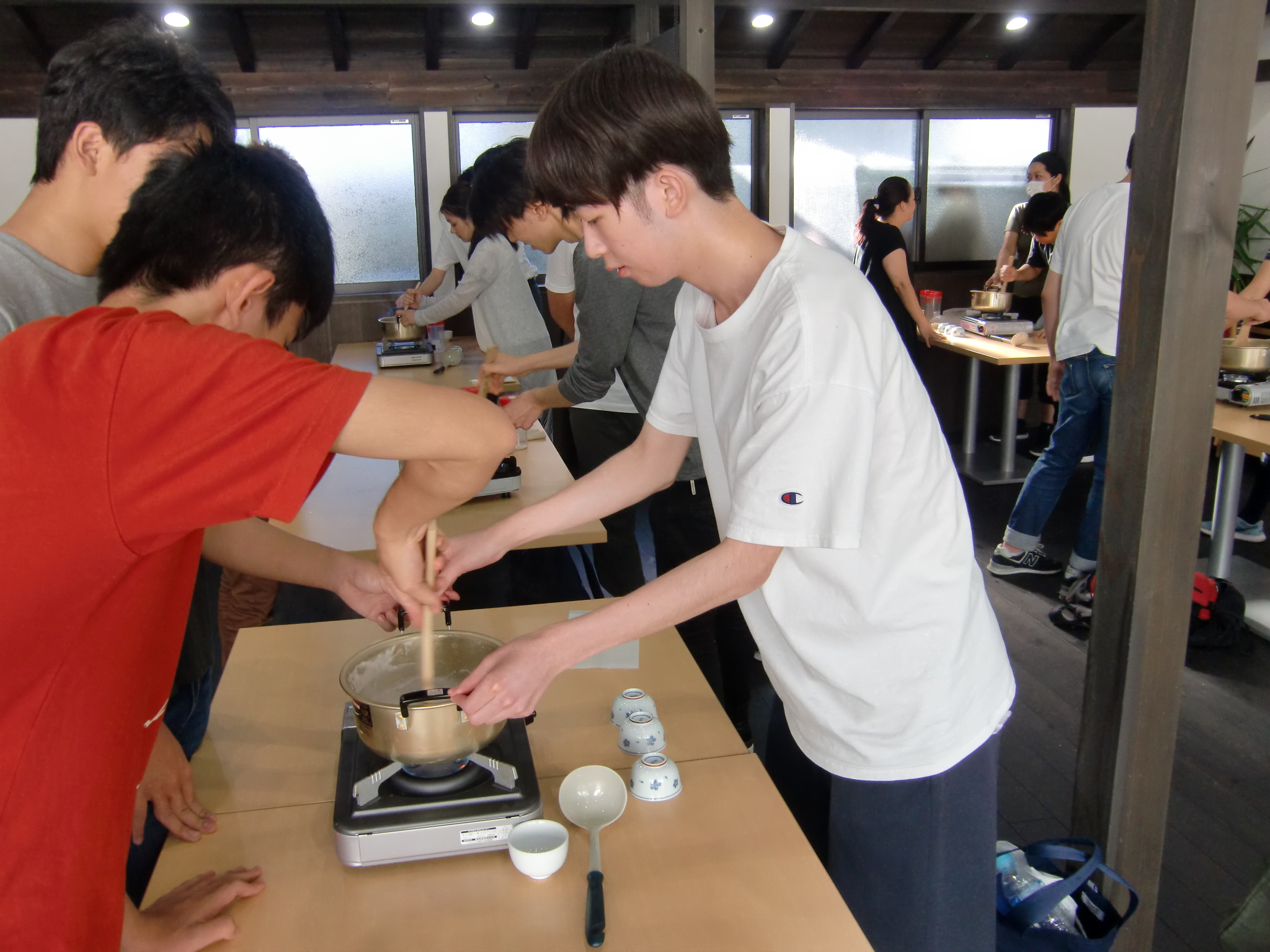 高野山 老舗ゴマ豆腐店 角濱さんのご協力のもと皆さんで手作り体験です。