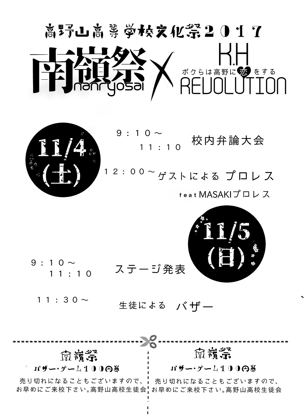 11月4、5日(土日)に文化祭が行われます。